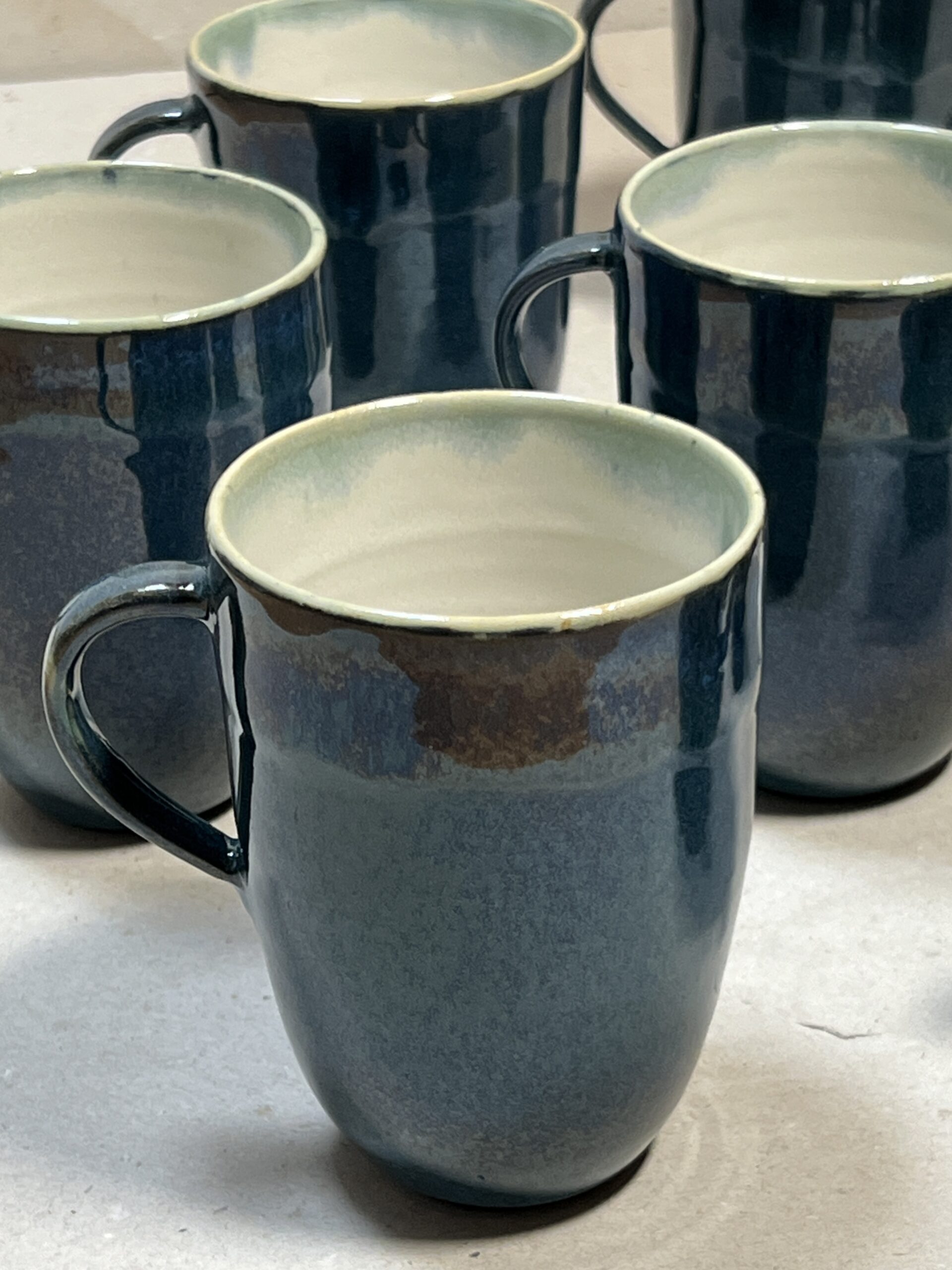 Farbe: Aussen dunkelblau, innen weiss.