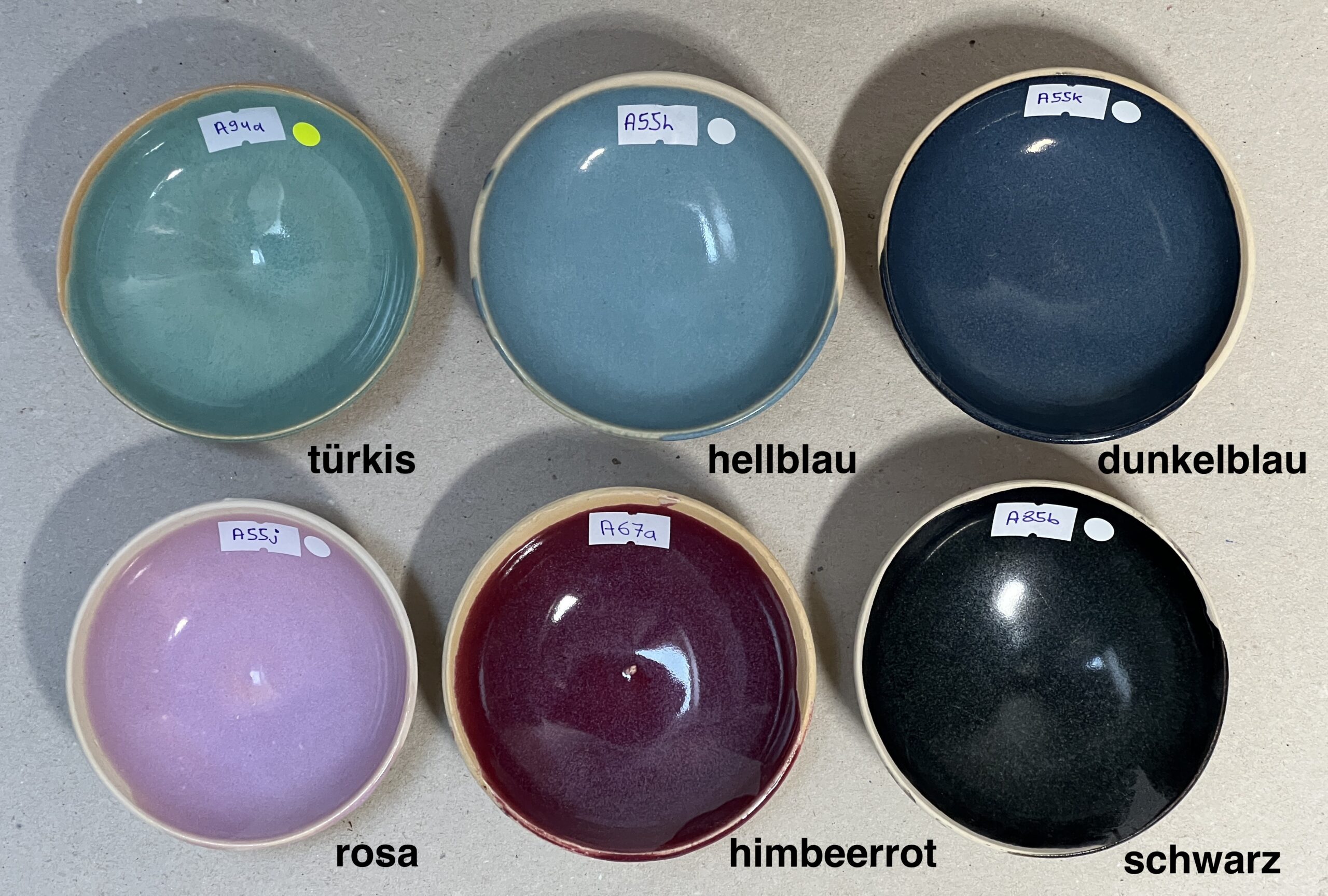 Anmerkung: Jedes Stück ist von mir im LehmAtelier in Brugg von Hand auf der Töpferscheibe geformt und glasiert. Kleinere Abweichungen in der Form, den Abmessungen oder der Farbgebung sind möglich.